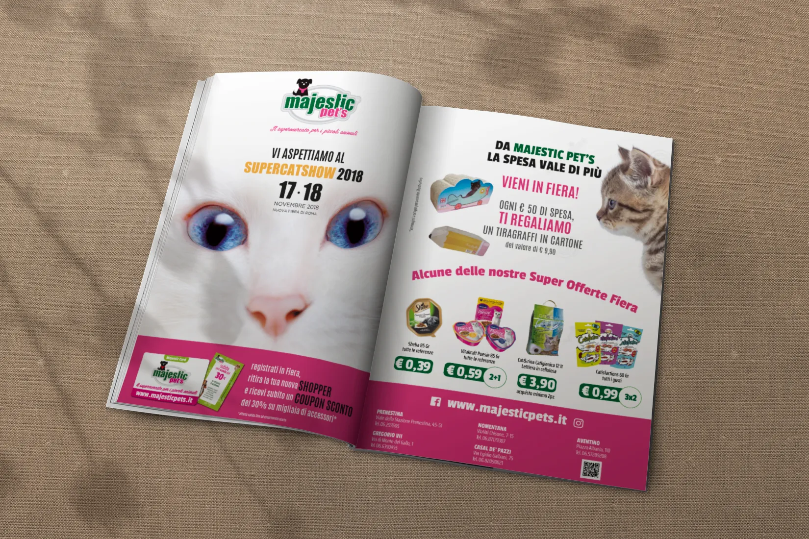 Abbiamo realizzato, la brochure istituzionale dell’Azienda, abbiamo curato gli eventi di apertura dei nuovi punti vendita, ci siamo occupati del design degli allestimenti per fiere ed eventi a cui Majestic Pet’s ha partecipato.